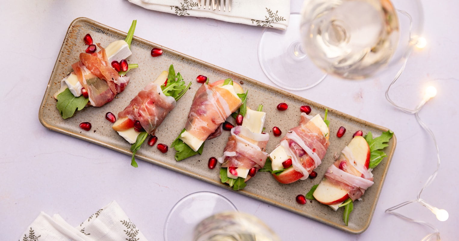 C’est quoi les bouchées de pomme, brie et roquette enroulées de prosciutto crudo ?
