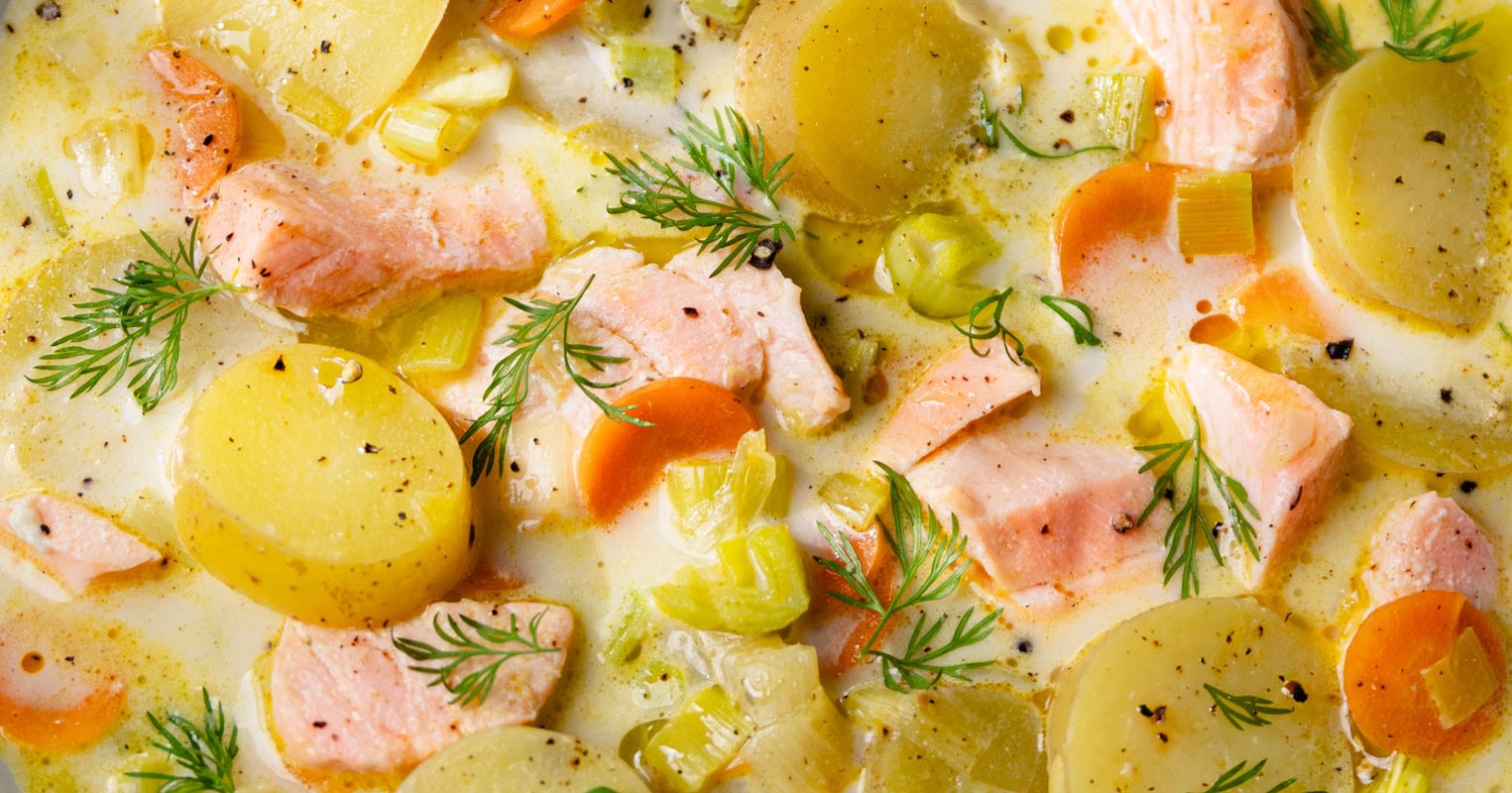 Composé de morceaux de saumon tendre, de pommes de terre fondantes et d’une base crémeuse subtilement parfumée à l’aneth, cette soupe réunit des ingrédients simples, mais riches en saveurs.