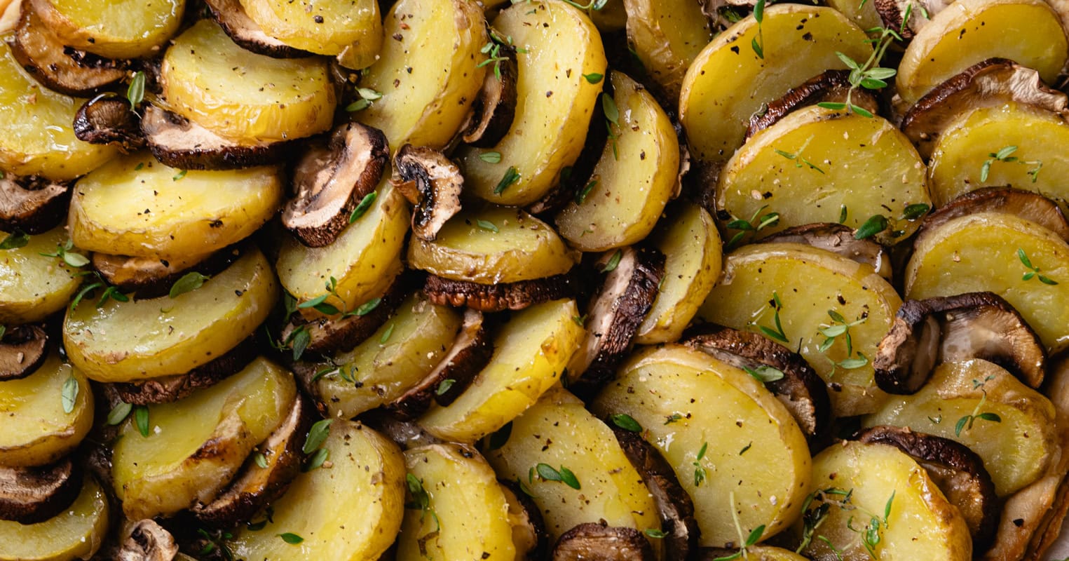 - Alternez pommes de terre et champignons pour un visuel élégant et une répartition homogène des saveurs.